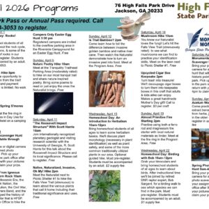 Bring your phone or digital camera for a spring themed photo scavenger hunt that takes you all around the park! Pick up your assignment in the park office after 9am and return with your pictures before 4pm to claim your prize. Call (478) 993-3053 for more information.