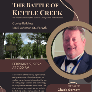 Join the Monroe County Historical Society at the Conley Building on Monday, February 2nd at 7PM for a program led by Chuck Garnett. Mr. Garnett is the President of the Kettle Creek Battlefield Association and his talk will feature stories of the Revolutionary War Battle of Kettle Creek along with tales of how the Revolutionary […]